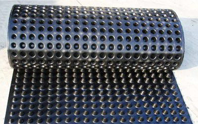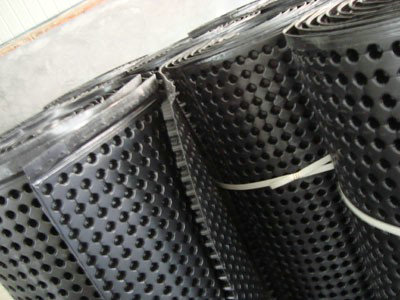 塑料排水板 塑料排水板应用于屋面工程时可直接平铺于防水层之上,代替传统屋面中防水层之上7cm厚的钢筋混凝土刚性保护层,从而使保护层由原来的刚性变为柔性,使施工更加简便、快捷,而且从根本上减少了刚性保护层施工过程中对已完成的防水层的破坏,从整个工程角度来看,塑料排水板施工速度快无需养护回填土随后跟进,大大缩短了工期,节省人力、财力、物力。